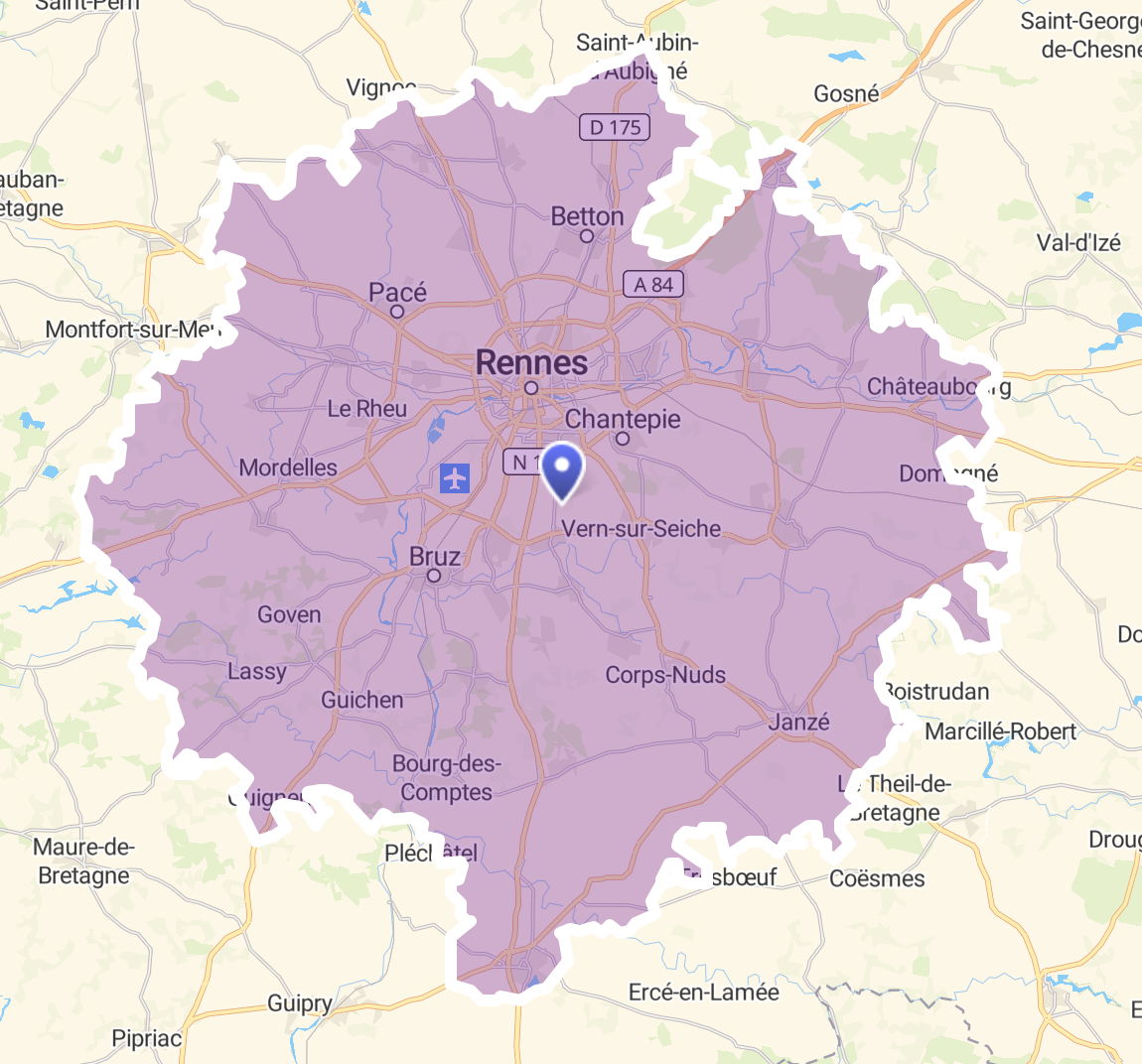 Rennes et dans un rayon de 30 kms autour de Noyal-Châtillon-sur-Seiche.